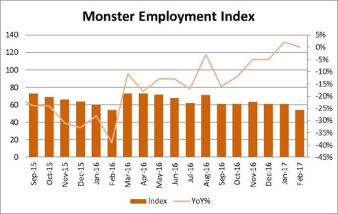 Malaysia, 29 MARCH 2017: Malaysia recorded zero annual growth in online hiring between February 2016 and February 2017, according to the latest Monster Employment Index (MEI).